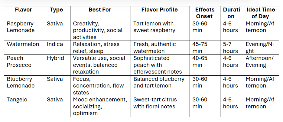 • Detailed Flavor Reviews – In-depth exploration of all 5 flavors (Raspberry Lemonade, Watermelon, Peach Prosecco, Blueberry Lemonade, and Tangelo)